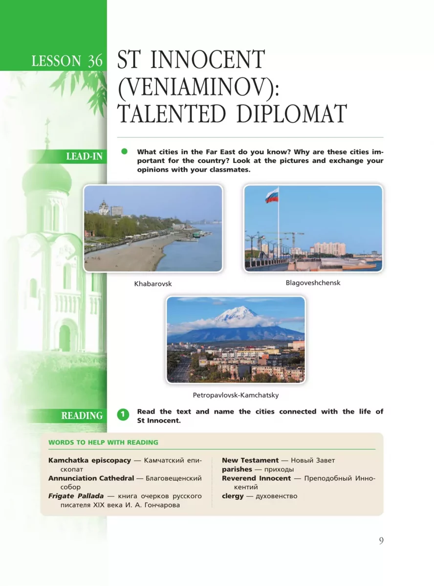 А вот учебник для 10-11 классов «Английский язык. Славное наследие России. 19 век» выглядит по-настоящему инновационно. На обложке крупными буквами написано Glorious Russia, а содержание «интегрировано со школьным курсом изучения истории и включает в себя основные исторические события и жизнеописания выдающихся исторических деятелей России XIX века».