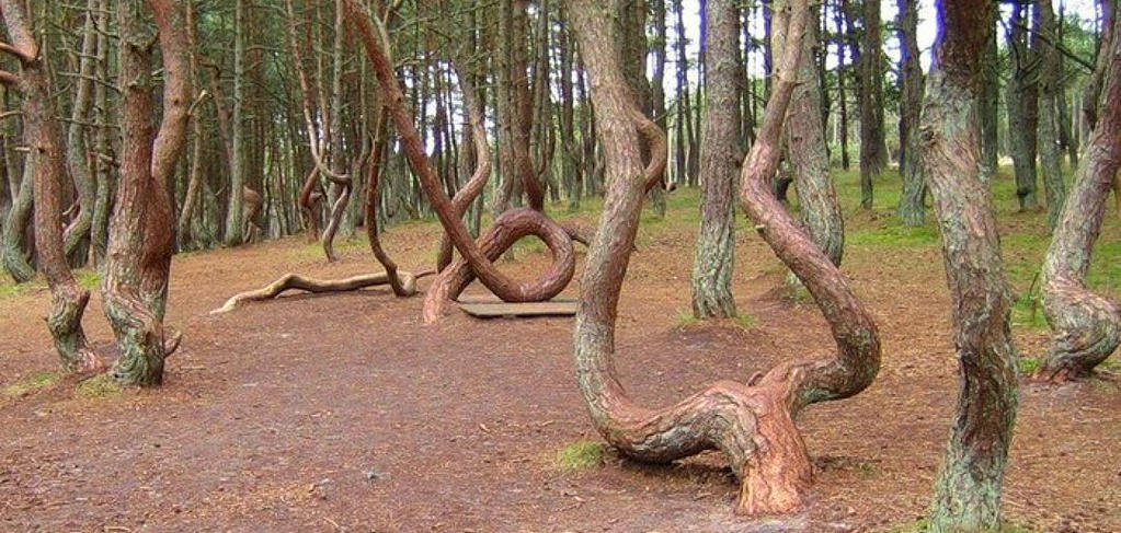 На Куршской косе, которая отделяет Куршский залив от Балтийского моря, есть загадочное место — стволы деревьев там изгибаются и закручиваются так, будто они пляшут. Из-за этой особенности участок называют танцующим лесом. Ученые спорят, из-за чего стволы деревьев так искривились: кто-то говорит об особенностях почвы, кто-то — о влиянии сильного ветра или вредителей. Но, конечно, такое необычное явление обросло огромным количеством мифов. Прочитайте четыре легенды появления «Танцующего леса», и угадайте, какую из них мы выдумали сами.