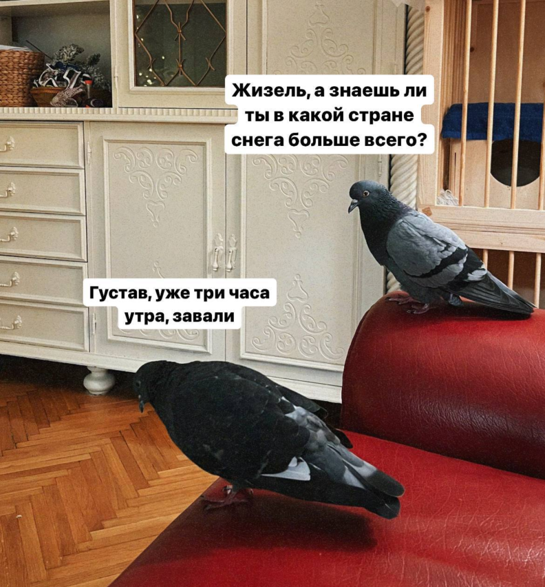 По ее словам, когда у нее появился Густав, она нашла в Инстаграме огромное количество потрясающих блогеров-иностранцев, которые уже давным-давно содержат голубей как домашних. Они живут с ними в квартире, принимают вместе с ними ванну и показывают, что жизнь с голубями может быть очень чистой, цивилизованной и красивой. Теперь у Густава тоже есть свой телеграм-канал. У него почти 6 тысяч подписчиков.