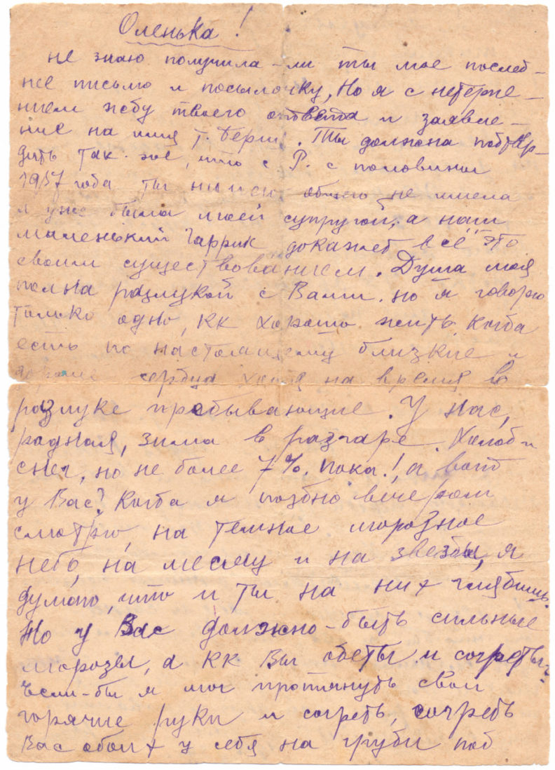 Отношения с отцом у Георгия Каретникова не сложились. «Он считает, что его отец каким-то образом причастен к аресту его мамы, Ольги Семеновны, — рассказывает Даша. — И их отношения всю жизнь были, мягко говоря, прохладными. Нам не удалось добыть протокол допроса, никаких подтверждений этому нет. Но есть справка, в которой Николай Каретников пишет: